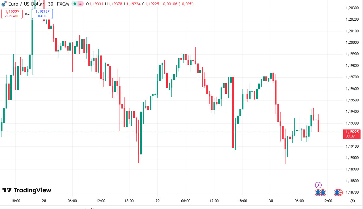 Aktuell konsolidiert der EUR/USD-Kurs knapp über 1,19 und wartet auf neue Impulse. | Chart-Quelle: TradingView